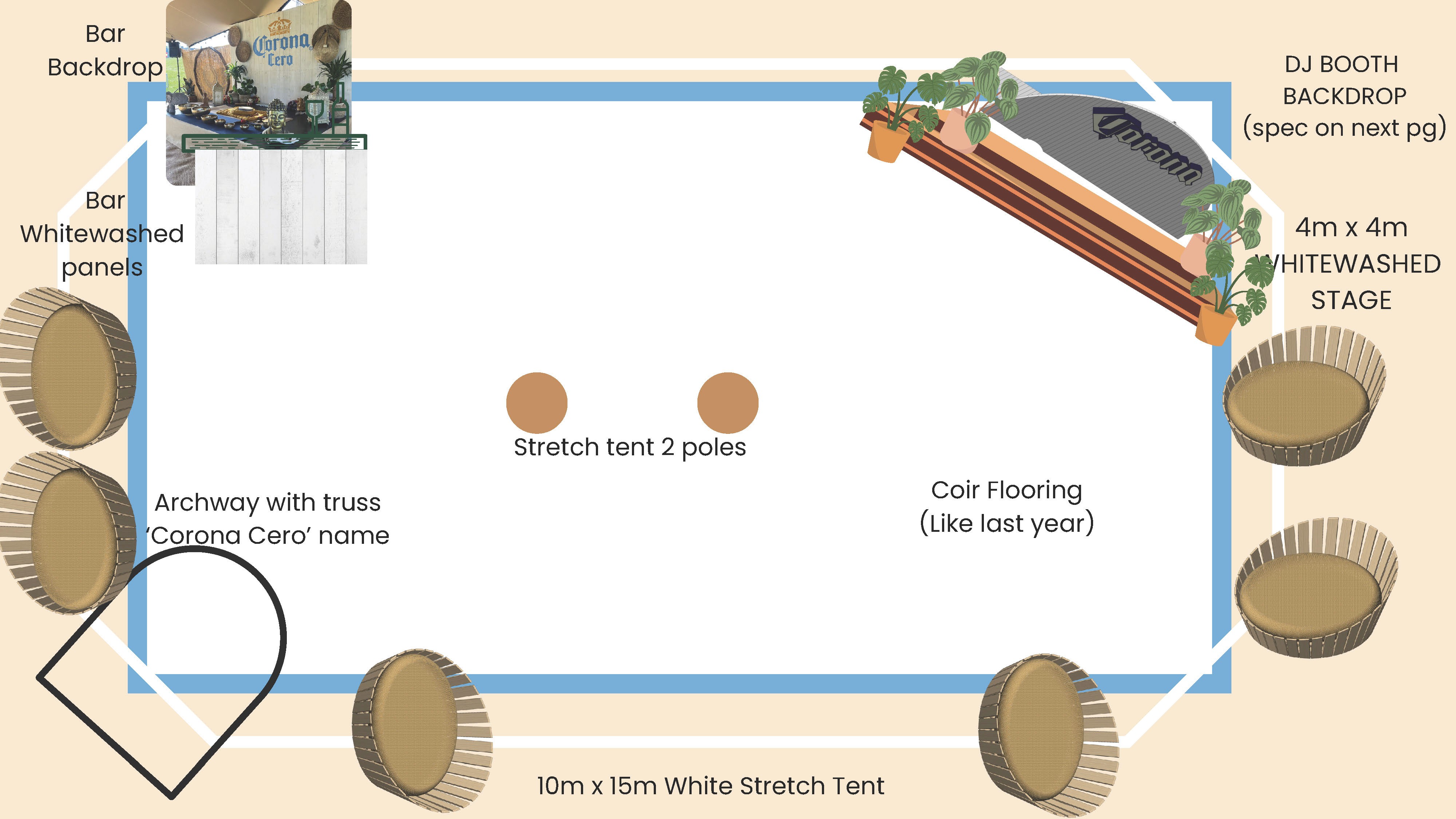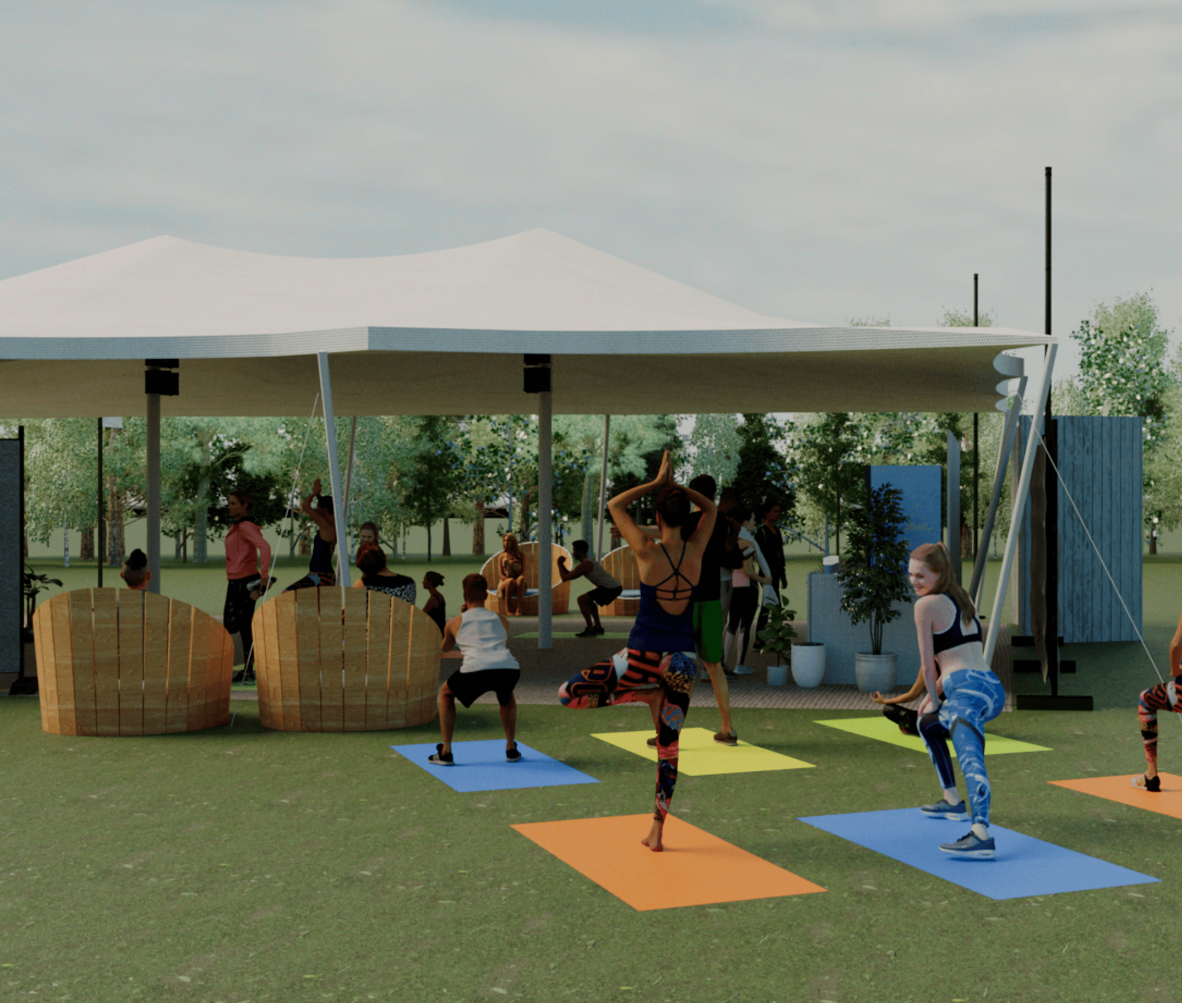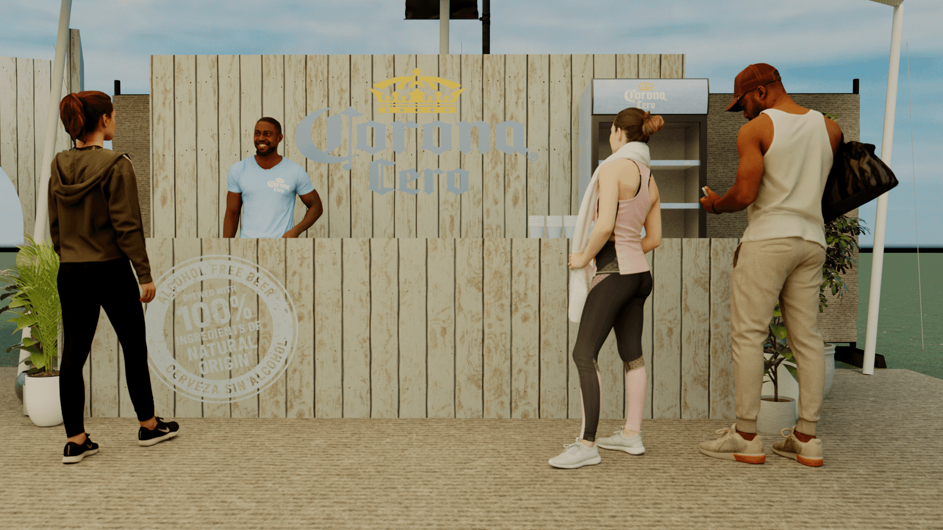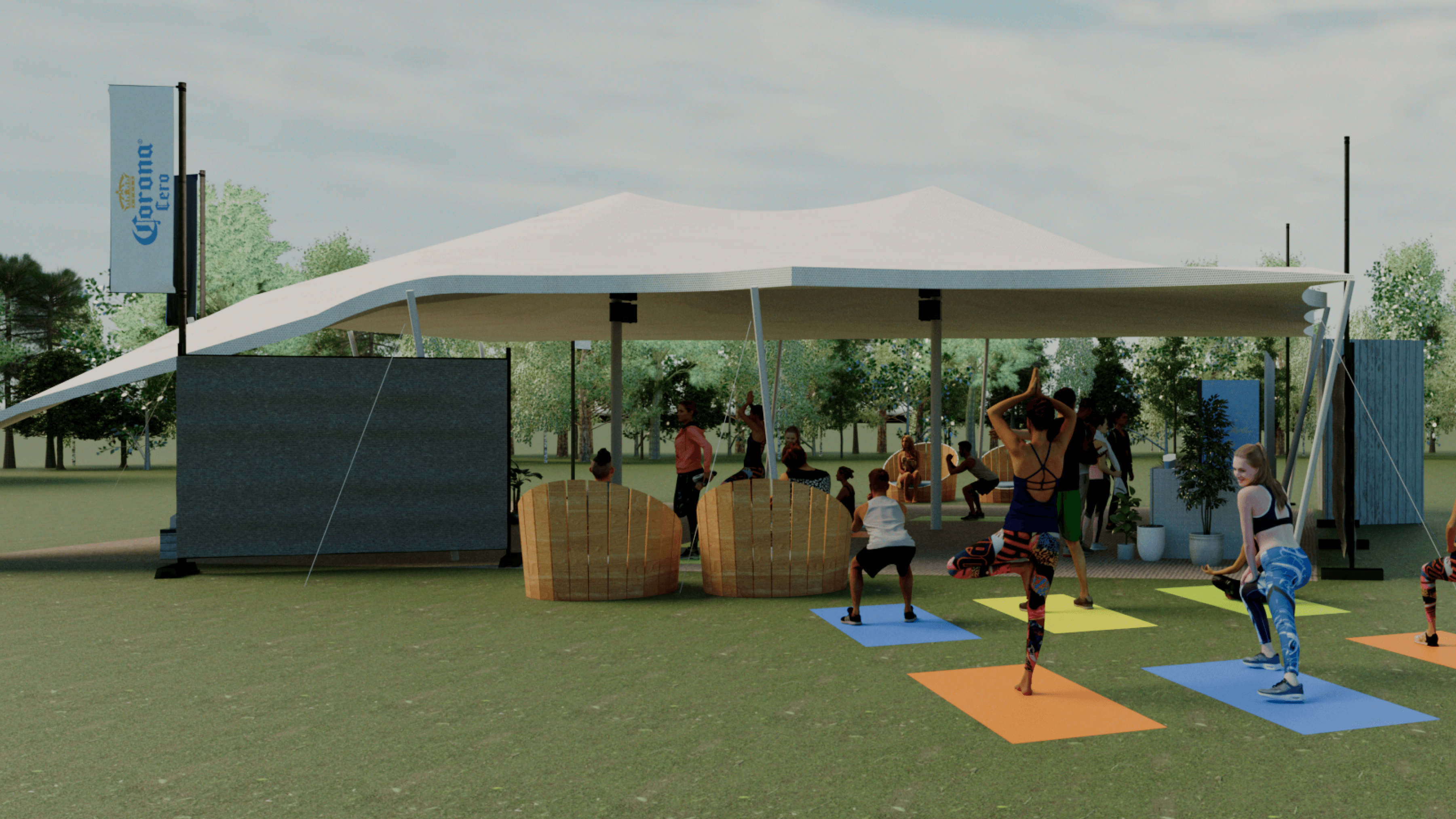 I created this 3D visualisation for Corona Zero’s space at WellFest, blending mindful movement with laid-back vibes. Think yoga under a canopy, a DJ spinning mellow beats, complimentary body art, and a branded bar that served refreshment without the hangover.