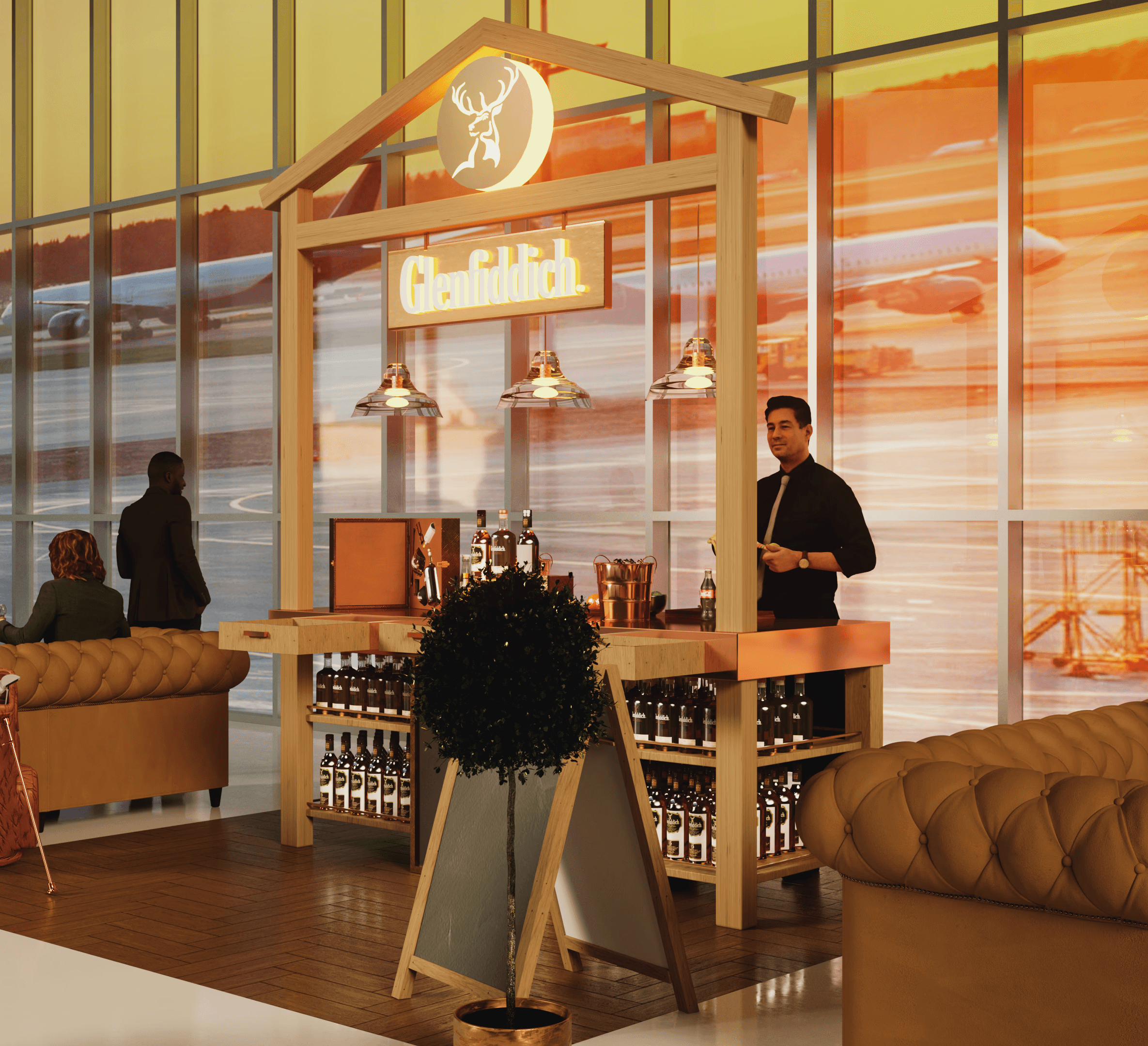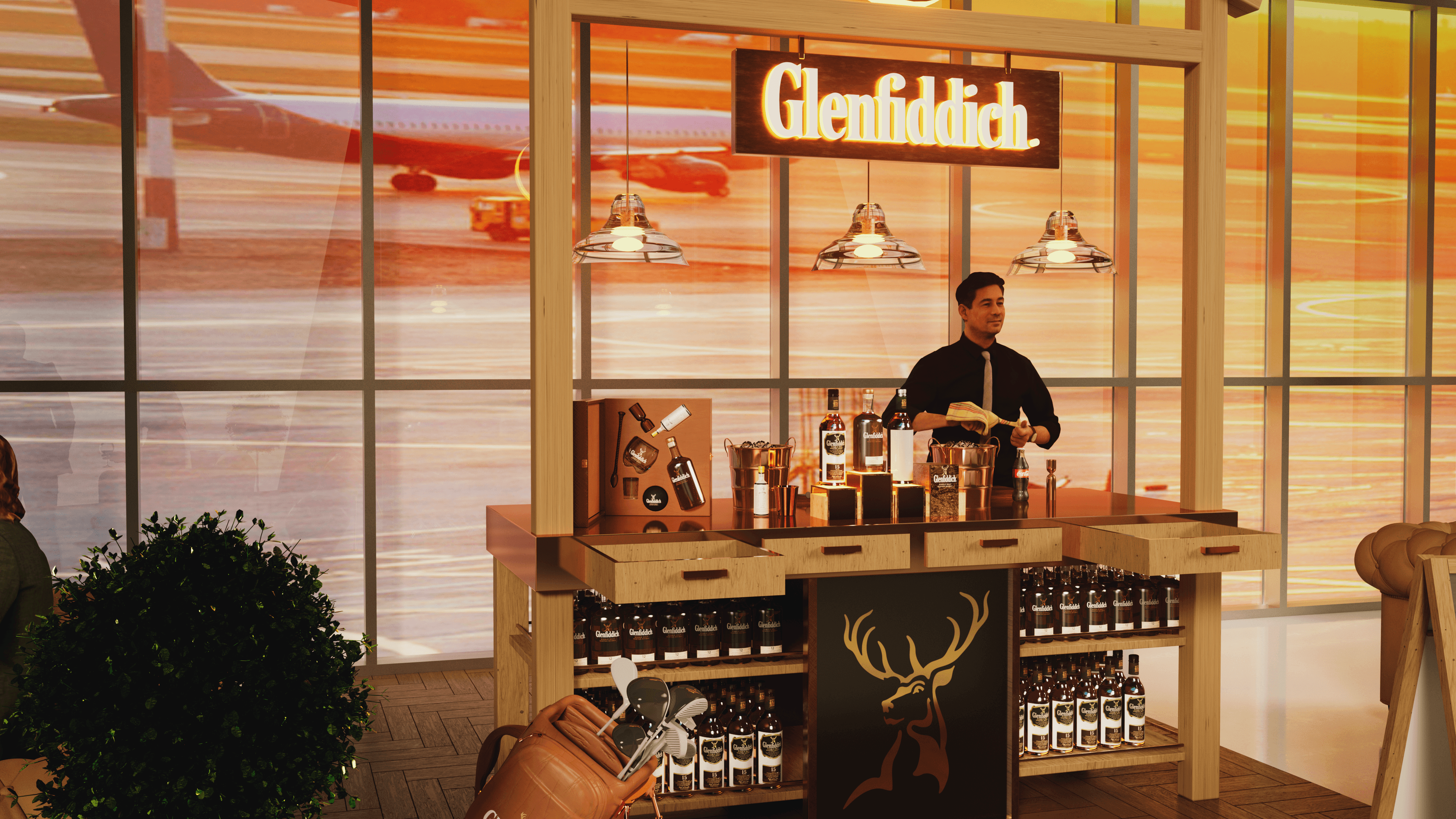 The final visuals transform the Glenfiddich Immersive Whisky Pop-Up into a striking experiential concept that feels premium, atmospheric and true to the brand’s adventurous spirit — delivering a cohesive, immersive design that engages audiences and elevates the whisky experience.